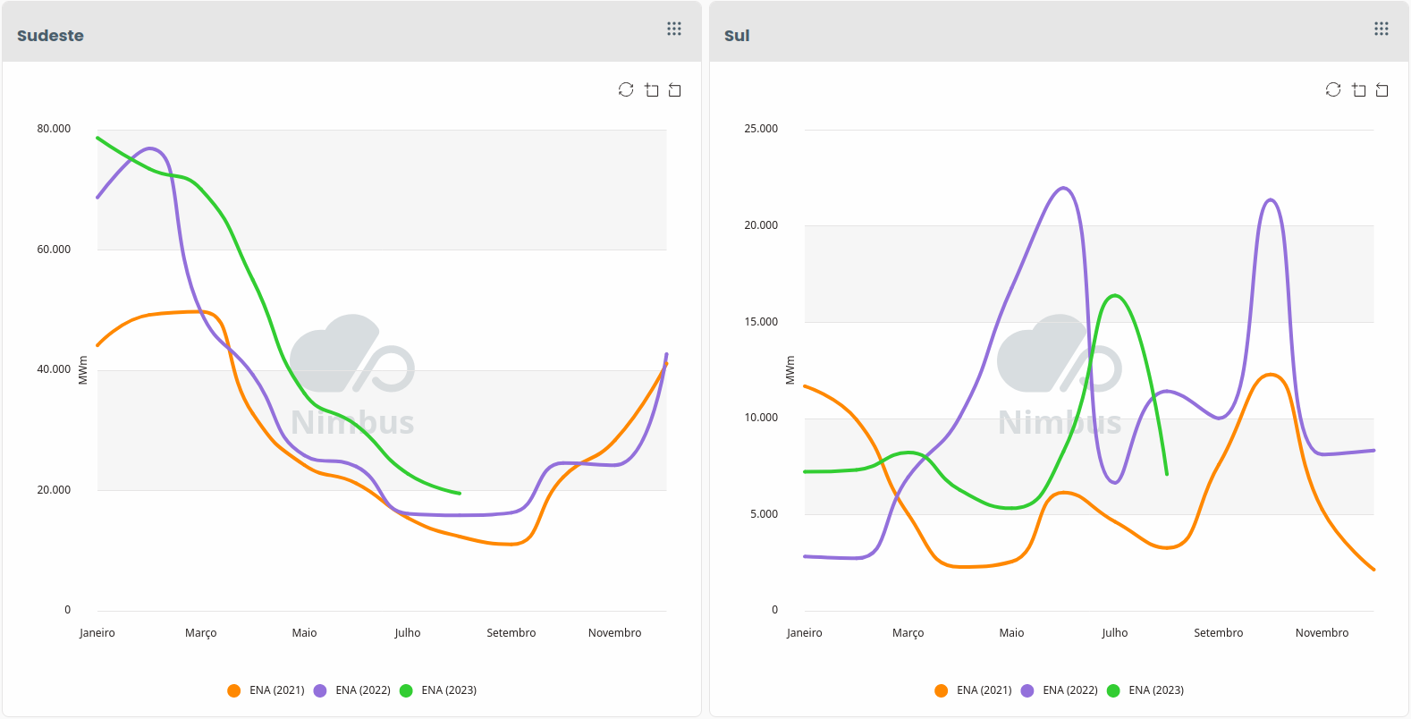• Disponibilização de gráficos dos dados históricos de ENA, Carga e Reservatório